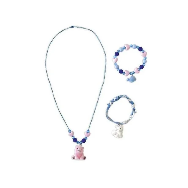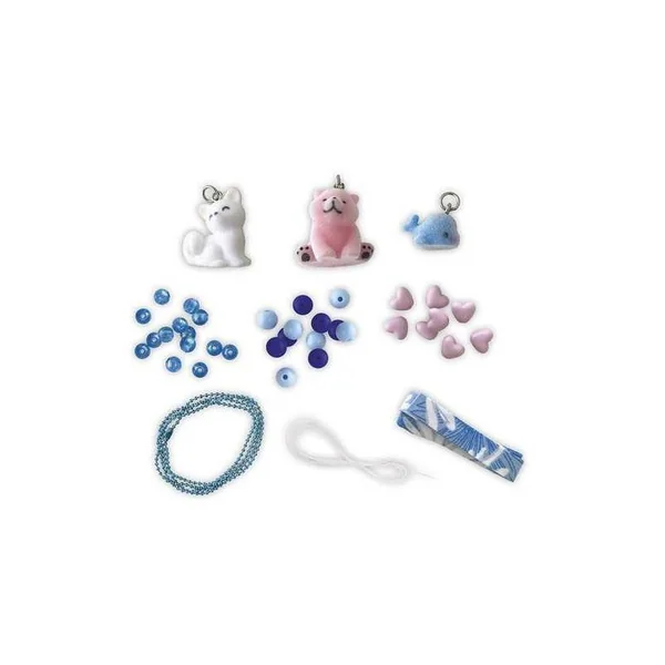Au total, ce sont 1 collier et 2 bracelets que les enfants pourront réaliser grâce au contenu du coffret créatif, soit : 3 breloques recouvertes de velours, 12 perles rondes, 7 perles en forme de cœur, 20 perles transparentes, 1 ruban imprimé, du fil élastique, et 1 chaîne microbilles avec fermoir intégré. Un livret avec modèles et instructions est aussi inclus pour guider les enfants dans l’activité. Dans leur style polaire, ces animaux sont à croquer !
