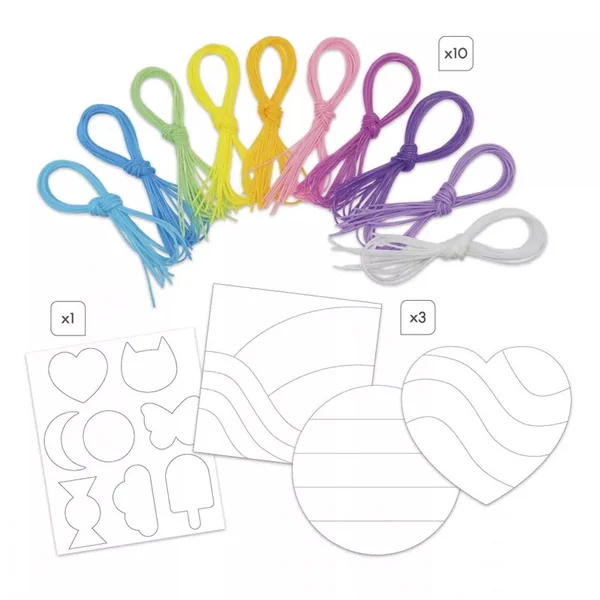 Avec ce kit créatif, les enfants à partir de 8 ans et même les plus grands peuvent réaliser 11 créations acidulées ! D’abord, 3 tableaux sur lesquels les fils se collent pour former des paysages toujours plus colorés. Créez des ondulations, des dégradés … Ensuite, 8 stickers de différentes formes à décorer que les enfants peuvent offrir ou conserver comme un trésor.