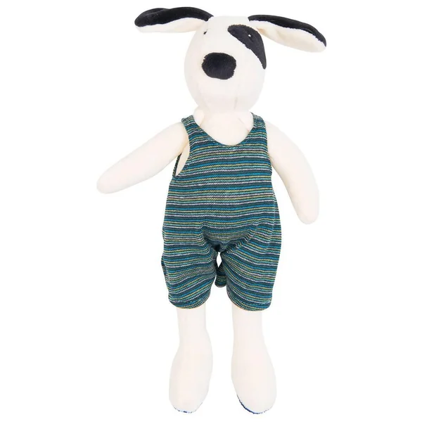 Nini, petite souris jolie, Sylvain lapin coquin, Perlette, grenouille espiègle et rigolote… Cette joyeuse compagnie s’est réunie pour le plus grand plaisir des tout-petits… Julius est le compagnon rêvé! Tout doux, il estvêtu d’un habit rayé dans les tons verts et bleus. Il est parfait pour des moments de complicité avec bébé. Hauteur : 30 cm.