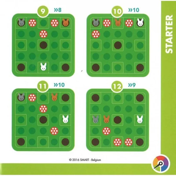 Trouvez le bon parcours afin de mettre les lièvres à l’abri. Utilisez les autres lièvres, champignons et renards comme autant d’obstacles par-dessus lesquels bondir pour cacher les lièvres dans leur gîte.