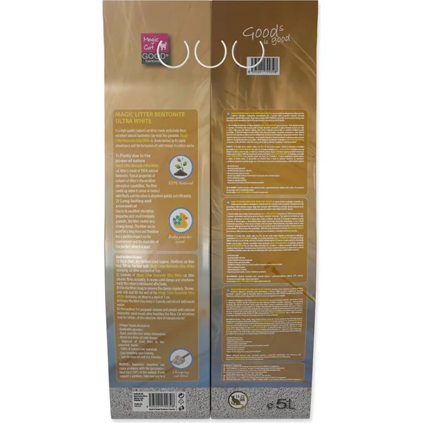 MAGIC LITTER BENTONITE ultra white est une gamme de litières super premium qui contiennent de l’argile fine avec d’excellentes propriétés d’absorption.