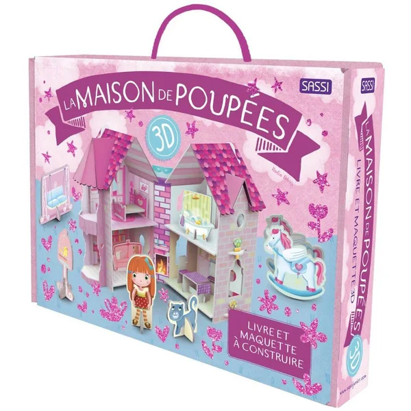Dans une maisonnette rose et blanche vit une jolie petite poupée. Observe-la pendant qu’elle se détend dans le salon, bouquine dans sa chambre, prépare des biscuits dans la cuisine, et se fait belle dans la salle de bain ! Construis une belle petite maison, observe à travers ses fenêtres, puis ouvre la en deux et découvre toutes les pièces à l’intérieur : déplace les objets et sa ravissante habitante comme il te plaira !
