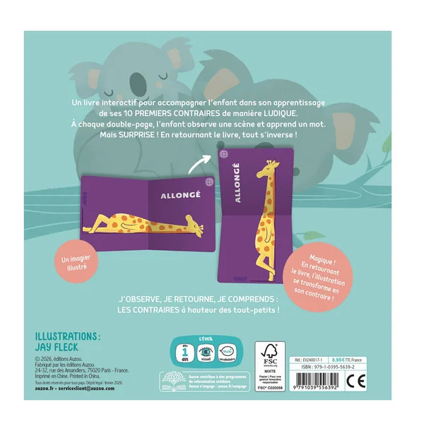 Pensé pour les enfants dès 1 an, ce tout-carton interactif permet de découvrir 10 paires de contraires en observant, manipulant et en s’amusant !