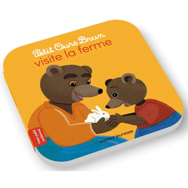 Petit Ours visite la ferme : il est tout excité de voir les animaux !Mais oh, oh, voilà les vaches… Petit Ours Brun est un peu inquiet. Et s’il rentrait goûter ?