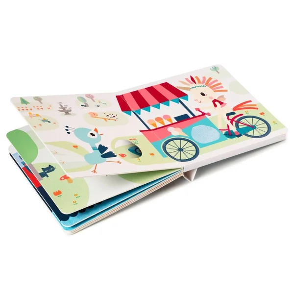 Ce livre sonore rigolo aborde de manière originale le thème des véhicules. Reconnaîtras-tu les sons et les véhicules ? Stimule l’imagination et la motricité fine.