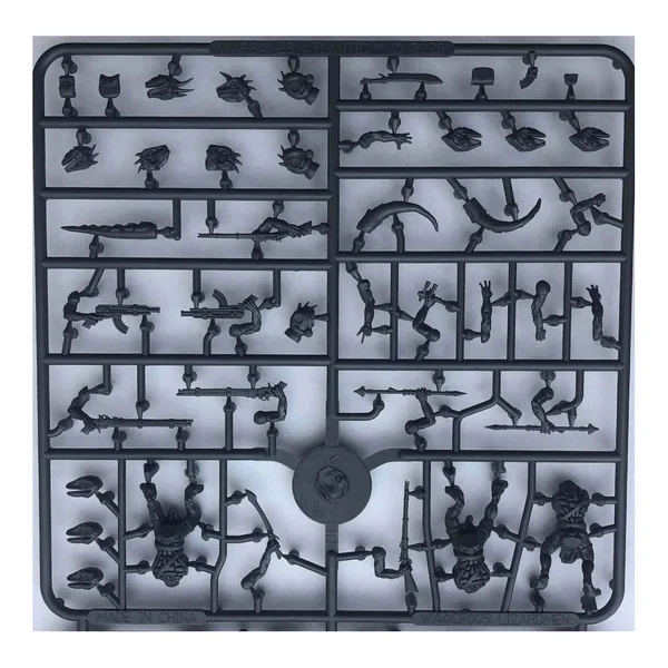 Cette boîte vous permet d’aligner jusqu’à 24 hommes-lézards en plastique, avec la possibilité de les armer d’épées et de lances, de mousquets fantaisistes et britanniques ou d’auto-fusils. Il y a quatre types de têtes pour tous les corps afin que vous puissiez utiliser ces figurines dans des parties fantastiques, de science-fiction victorienne ou de science-fiction pure.