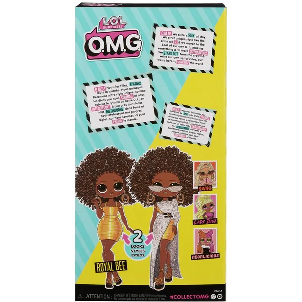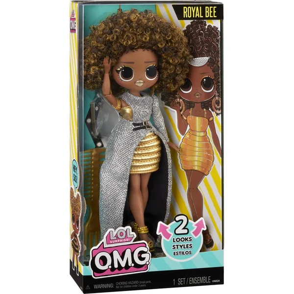 O.M.G ! Nous, les sœurs, nous nous déchaînons toute la journée. Nous paradons dans un style unique comme les divas que nous sommes et nous marchons au rythme de notre propre D.J., en rendant tout un peu plus scandaleux. Nous nous démarquons de la foule et nous écrivons nos propres règles, car nous sommes là pour surprendre tout le monde.Les poupées mannequins L.O.L. Surprise O.M.G sont de retour avec de nouvelles tenues glamour et de superbes coiffures : dites bonjour à Royal Bee, la grande sœur de l’adorable personnage Lady Diva ! Royal Bee est la créatrice de tendance ; elle est là pour montrer tout ce qui est à la mode et fabuleux ! Déballez plein de surprises, dont des tenues transformables et des accessoires fabuleux, comme des lunettes de soleil ou des boucles d’oreilles, pour mettre en valeur son style royalement glam ! Habillez Royal Bee de sa robe argentée éblouissante et de ses deux ceintures noires ! Découvrez une surprise supplémentaire en retirant sa robe argentée et en révélant son body et sa jupe dorés étincelants, transformant instantanément sa tenue en un tout autre look ! Cette réédition de Royal Bee met en valeur ses traits époustouflants, sa coiffure, sa propre tenue accrocheuse ; elle est articulée pour prendre plein de poses différentes.Chaque boîte comprend une poupée mannequin L.O.L. Surprise O.M.G., des tenues audacieuses, des accessoires détaillés, des chaussures et un peigne ! Collectionnez les 4 poupées L.O.L. Surprise O.M.G. rééditées : Swag, Neonlicious, Lady Diva et Royal Bee ! Astuce : les mains sont amovibles pour faciliter l’habillage. Les poupées mannequins L.O.L. Surprise, avec leurs cheveux, leurs tenues et leurs nombreux accessoires détaillés, constituent un jouet parfait pour les enfants, y compris ceux de 4 ans et plus, pour jouer à faire semblant de manière imaginative ! Offertes en cadeau pour toute occasion spéciale, les poupées offrent des heures de jeu entre frères, sœurs et amis !