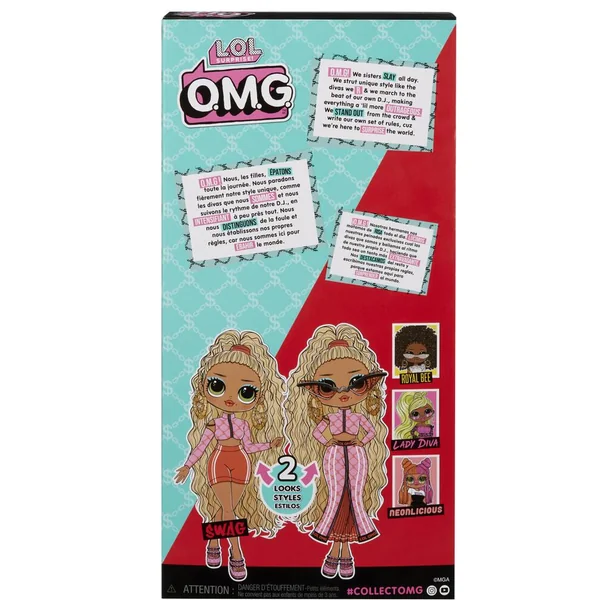 O.M.G ! Nous, les sœurs, nous nous déchaînons toute la journée. Nous paradons dans un style unique comme les divas que nous sommes et nous marchons au rythme de notre propre D.J., en rendant tout un peu plus scandaleux. Nous nous démarquons de la foule et nous écrivons nos propres règles, car nous sommes là pour surprendre tout le monde.Les poupées mannequins L.O.L. Surprise O.M.G sont de retour avec de nouvelles tenues glamour et de superbes coiffures : dites bonjour à Neonlicious, la grande sœur du personnage électrique Neon Q.T. ! Neonlicious est une styliste qui adore la mode et les relookings ; elle aime les couleurs vives, les lumières éclatantes et l’énergie ! Déballez plein de surprises, dont des tenues transformables et des accessoires fabuleux, comme des lunettes de soleil ou des boucles d’oreilles, pour mettre en valeur son style unique aux couleurs vives ! Habillez Neonlicious avec son haut OMG unique, son corset branché et sa magnifique jupe à carreaux ! Découvrez une surprise supplémentaire en enlevant sa jupe pour révéler un short bicolore en dessous, transformant instantanément sa tenue en un tout autre look ! Cette réédition de Neonlicious met en valeur ses traits époustouflants, sa coiffure, sa propre tenue accrocheuse, et est articulée pour prendre plein de poses différentes.Chaque boîte comprend une poupée mannequin L.O.L. Surprise O.M.G., des tenues audacieuses, des accessoires détaillés, des chaussures et un peigne ! Collectionnez les 4 poupées L.O.L. Surprise O.M.G. rééditées : Swag, Neonlicious, Lady Diva et Royal Bee ! Astuce : les mains sont amovibles pour faciliter l’habillage. Les poupées mannequins L.O.L. Surprise, avec leurs cheveux, leurs tenues et leurs nombreux accessoires détaillés, constituent un jouet parfait pour les enfants, y compris ceux de 4 ans et plus, pour jouer à faire semblant de manière imaginative ! Offertes en cadeau pour toute occasion, les poupées offrent des heures de jeu entre amis !