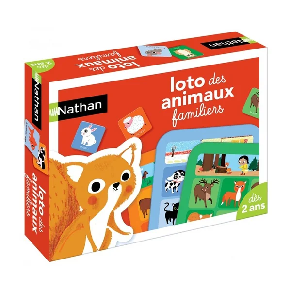 Un grand loto pour découvrir les animaux familiers à travers les 5 planches du jeu : la ferme, la forêt, la mare…