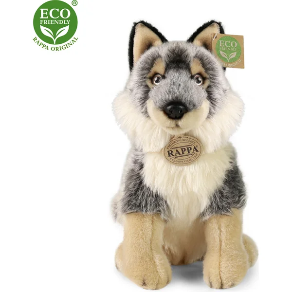 Un magnifique loup en peluche de 28 cm est fabriqué en peluche de haute qualité et fait partie de la collection exclusive de jouets en peluche RAPPA.