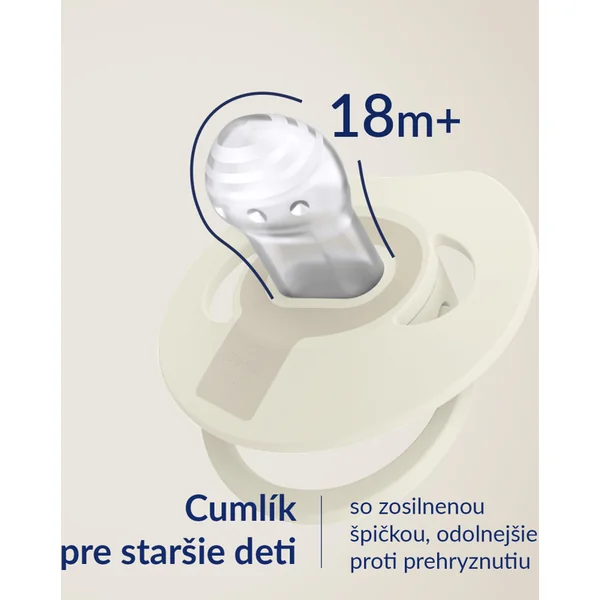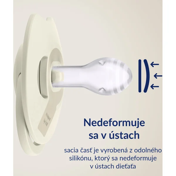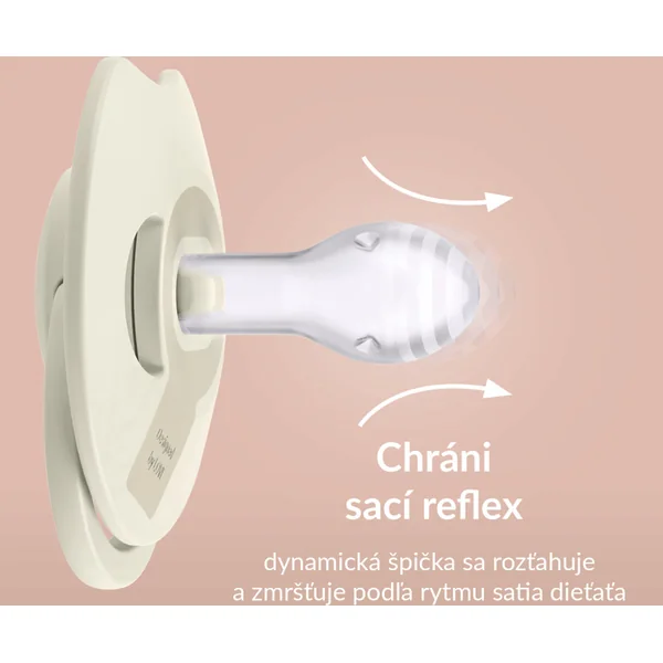 La tétine dynamique, grâce à sa construction unique en silicone de différentes épaisseurs, s’étire et se rétracte selon le rythme de succion de l’enfant. Cela protège son réflexe de succion et n’a pas d’effet néfaste sur l’allaitement. La forme symétrique de la pointe est inspirée de la forme d’un mamelon rempli de lait, offrant au bébé une sensation familière similaire à celle du sein. Le bouclier de la tétine est spécialement conçu pour faciliter la respiration par le nez et la déglutition de la salive, tout comme avec les seins. Le bouclier moulé adhère le moins possible à la peau de l’enfant, ce qui facilite la libre circulation de l’air et réduit ainsi le risque d’irritation de la peau.
