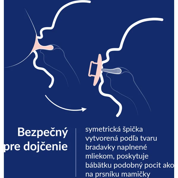 SÉCURISÉ POUR L’ALLAITEMENT La pointe symétrique, créée selon la forme d’un mamelon rempli de lait, offre au bébé une sensation similaire à celle du sein de sa mère.