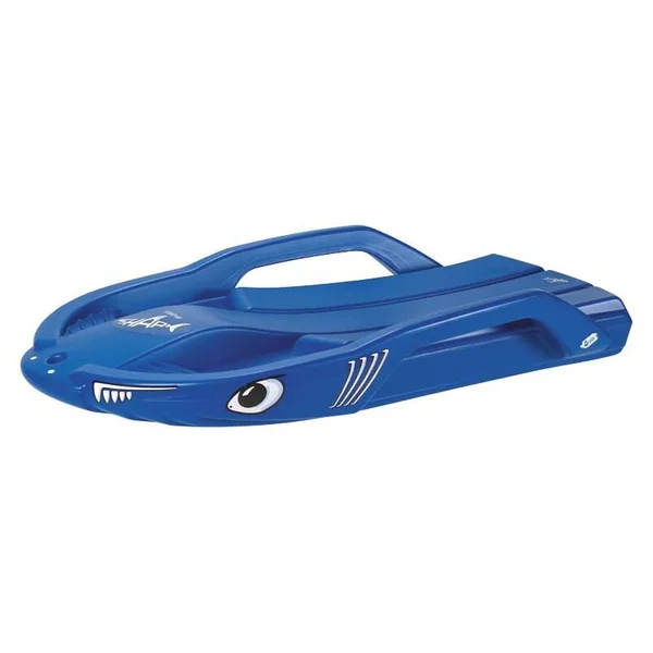 Luge RollySnow Shark à corps extrêmement stable. Cordon de traction, traineau pouvant supporter une charge jusqu’à 100 kg. De couleur bleue.