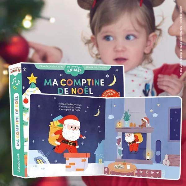 Grâce à la puce sonore sur la première double-page (accessible dès la couverture grâce à une découpe !), écoute et chante ta comptine préférée ; puis tourne les pages pour en animer les paroles à l’aide de 5 mécanismes faciles à activer. La comptine prend vie et sens !