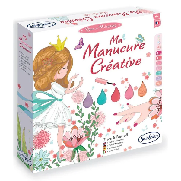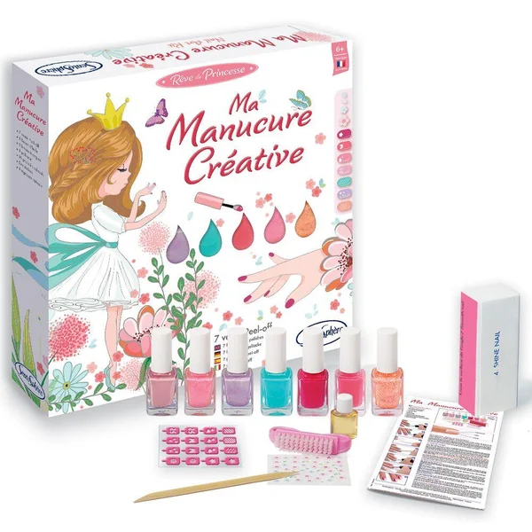 Un coffret pour s’inventer des mains de princesse : les enfants vont pouvoir peindre leurs ongles de 7 couleurs différentes pour se faire une jolie manucure. Le vernis se retire très facilement, en quelques secondes, en soulevant la couche de couleur, avec son autre main. Les ongles redeviendront naturels immédiatement. Très complet, ce coffret propose aussi un polissoir pour faire briller ses ongles naturellement et des pochoirs de fleurs pour réaliser une manucure comme une professionnelle !