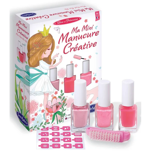Un mini coffret pour se faire une jolie manucure grâce à 3 couleurs de vernis peel-off. Ces vernis, qui sont très faciles à enlever et qui se soulèvent pour se décoller, n’abimeront pas les ongles. Une petite brosse est fournie avec des pochoirs.