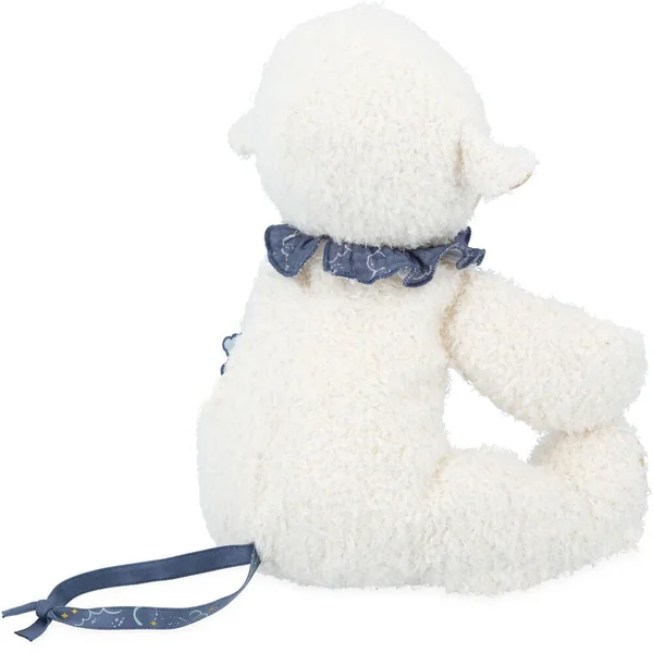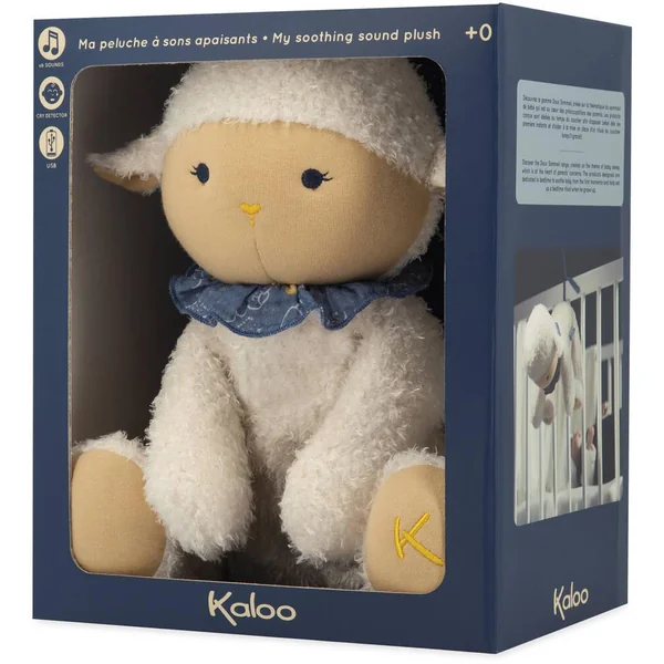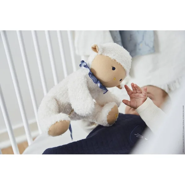Découvrez la gamme Doux Sommeil, créée sur la thématique du sommeil de bébé qui est au cœur des préoccupations des parents. Les produits concus sont dédiés au temps du coucher afin d’apaiser bébé dès les premiers instants et d’aider à la mise en place d’un rituel du coucher lorsqu’il grandit. Notre tendre peluche (25 cm) veillera à réconforter bébé avec ses 6 sons apaisants (battements de cœur, cigales, pluie, vagues, ronronnement de chat, sèche-cheveux) afin de le calmer et l’endormir tout en douceur. Ce doux mouton porte dans son ventre (ouverture par scratch) le boîtier à sons apaisants amovible. Le fonctionnement du boîtier est détaillé dans le mode d’emploi inclus dans la boîte. Informations utiles : -Mode détection des pleurs -Rechargeable par câble usb (fourni) -Autonomie : 23h -Temps de charge : 1h –