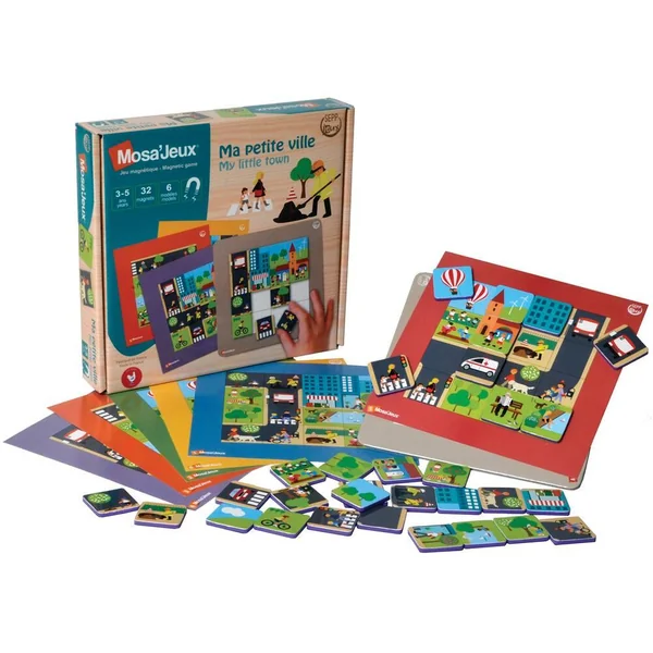 A toi de jouer ! Choisis un modèle et place-le sur le plateau de jeu. Observe les motifs du modèle et recouvre-les avec les bons jetons. Mais aussi. sans l’aide d’un modèle, invente et raconte ton monde en créant ta propre histoire ! Allez, tous en ville : à trottinette, à vélo ou à pied, par la rue ou par les airs, file et invente la ville qui te ressemble !