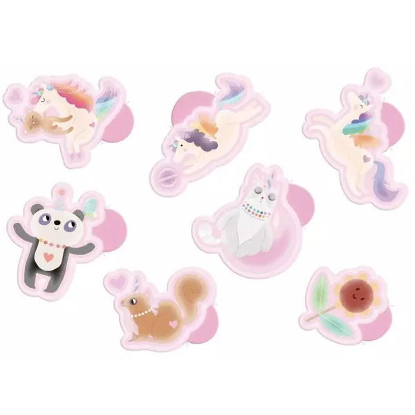 Une pochette de gommettes repositionnables sur le thème féérique des licornes ! Et bonus : elles brillent dans le noir ! Les gommettes sont faciles à détacher grâce à la languette dont elles disposent.
