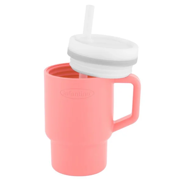 Ma première tasse en silicone d’Infantino est parfaite pour épancher la soif de bébé! Cette tasse de 25.5cl permet à bébé de boire comme un grand. La tasse est légère, 100% silicone et parfaitement préhensible. La paille en deux parties est dotée d’une valve pour prévenir toute fuite, même lorsque bébé retourne la tasse, et assurer un passage maîtrisé du liquide. Le bout souple en silicone de la paille ne peut pas se retirer et est donc tout à fait adaptée pour les tout-petits. La tasse a une poignée très pratique et s’insère dans la plupart des porte-tasses afin que bébé puisse l’emmener dans ses déplassements. La tasse est idéale pour les boissons des tout-petits: eau, jus de fruits et lait (même chaud). Son nettoyage est extrêmement facile, il suffit d’ouvrir le couvercle et de placer la tasse au lave-vaisselle. Avec sa première tasse en silicone Infantino, bébé aura la même tasse que maman et restera hydraté toute la journée!