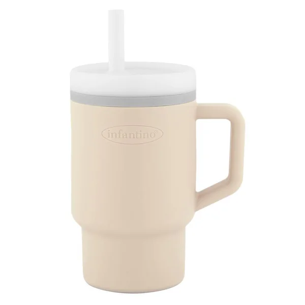 Ma première tasse en silicone d’Infantino est parfaite pour épancher la soif de bébé! Cette tasse de 25.5cl permet à bébé de boire comme un grand. La tasse est légère, 100% silicone et parfaitement préhensible. La paille en deux parties est dotée d’une valve pour prévenir toute fuite, même lorsque bébé retourne la tasse, et assurer un passage maîtrisé du liquide. Le bout souple en silicone de la paille ne peut pas se retirer et est donc tout à fait adaptée pour les tout-petits. La tasse a une poignée très pratique et s’insère dans la plupart des porte-tasses afin que bébé puisse l’emmener dans ses déplassements. La tasse est idéale pour les boissons des tout-petits: eau, jus de fruits et lait (même chaud). Son nettoyage est extrêmement facile, il suffit d’ouvrir le couvercle et de placer la tasse au lave-vaisselle. Avec sa première tasse en silicone Infantino, bébé aura la même tasse que maman et restera hydraté toute la journée!