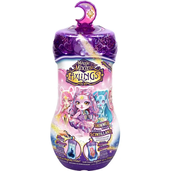 Quel Pixling Magic Mixies créera-t-il par magie en mélangeant une potion magique scintillante qui révèle sa poupée Pixling ? Pour préparer sa potion, votre enfant peut mélanger de l’eau avec les ingrédients magiques de la bouteille de potion. La potion bouillonnera pour devenir un mélange bleu foncé scintillant et tourbillonnant. Ensuite, prononcez les mots magiques, « Magicus Mixus », tout en tournant et en appuyant sur la gemme de cristal et sous ses yeux, la potion devient transparente, révélant comme par magie son Pixling à l’intérieur. Cette charmante poupée Pixling se retire facilement de la bouteille, complètement sèche et prête à être utilisée par votre enfant !