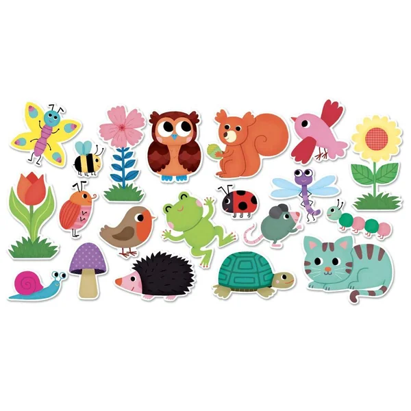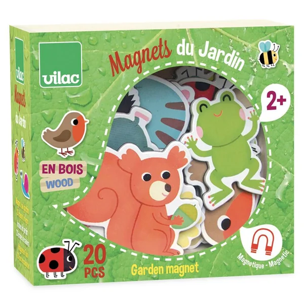 Grâce à ces vingt magnets en bois sur le thème du jardin, les enfants pourront imaginer plein d’histoires.