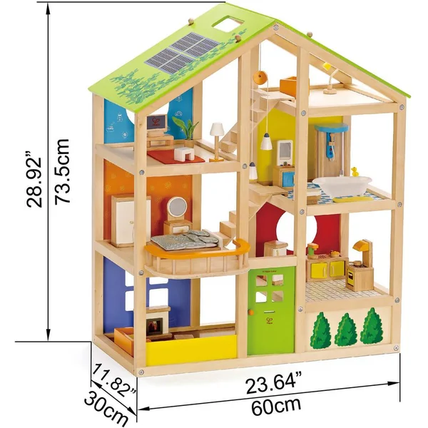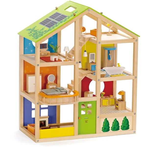 Il existe plusieurs façons de jouer avec cette maison. Six pièces, des escaliers amovibles et un toît équipé de panneaux solaires et réversible avec version été/hiver sont source d’inspiration pour des activités tout au long de l’année.