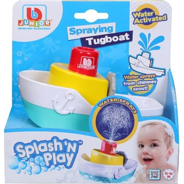 Le bateau avec jet d’eau Splash’N Play de BB Junior garantit aux jeunes enfants beaucoup de plaisir lors du bain. Il suffit de placer le bateau dans l’eau de la baignoire ou de la piscine et de regarder l’eau jaillir automatiquement de sa cheminée. Le merveilleux bateau Splash’N Play enseigne aux enfants le principe de la cause et de l’effet tout en assurant des heures de divertissement.