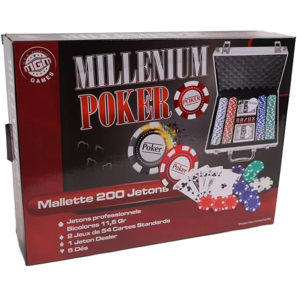Mallette 200 jetons numerotes poker cartes et dés.