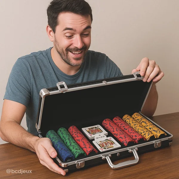 Jeu de jetons de poker en fibre de carbone. Assez de jetons pour une partie jusqu’à 6 joueurs ! Contenu :