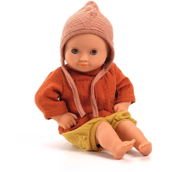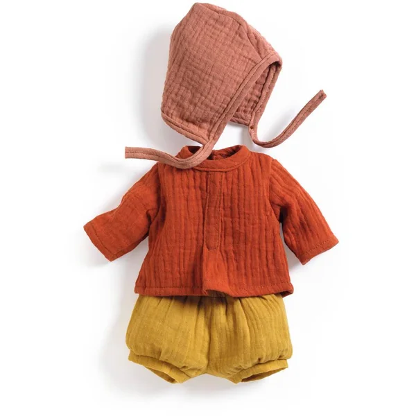 Les poupées sont chics dans cet ensemble de 3 pièces en double Gaze 100 % coton. Un bloomer à taille élastique et une chemise qui se ferme avec des scratchs dans le dos permettent aux petits parents d’habiller facilement la poupée. Le béguin complète joliment cette tenue.