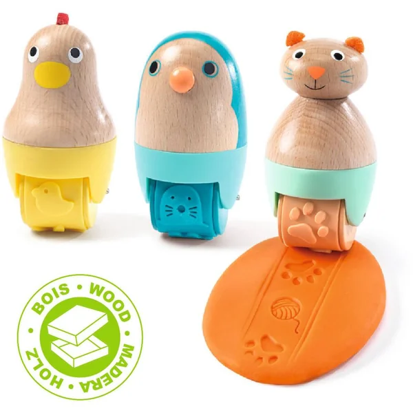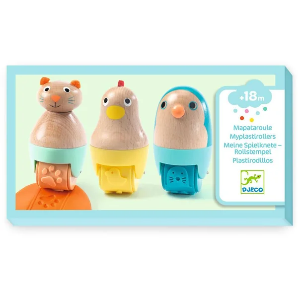 Trois rouleaux « animaux » qui laissent de drôles de traces dans la pâte à modeler ! Ergonomiques, ils sont faciles à attraper pour les petites mains.