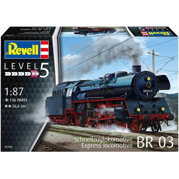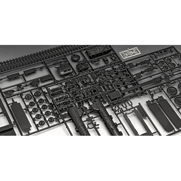 Maquette plastique de la locomotive pour trains rapides série 03 à l’échelle 1:87. 136 pièces à assembler, à coller e à peindre. Cette maquette de niveau 5 est parfaite pour tous ceux qui aiment les défis. La série 03 est une locomotive magnifiquement conçue qui ne manquera pas d’attirer l’attention dans toute collection. Elle est le complément parfait de la BR01 avec tender T32 et de la BR02 avec tender T30. – Chaudière détaillée avec gravures filigranes – Boîte à fumée – Roues motrices et timonerie de poussée – Tender et châssis du tender. 2 versions : Deutsche Bahn – Reichsbahn (003181 ET 03 2214-9). Modèle monté : 26,6 cm.