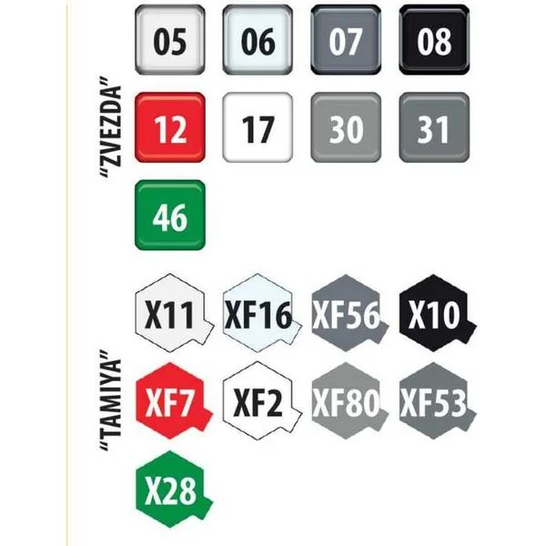 Schéma de couleurs (Couleurs recommandées Zvezda) :