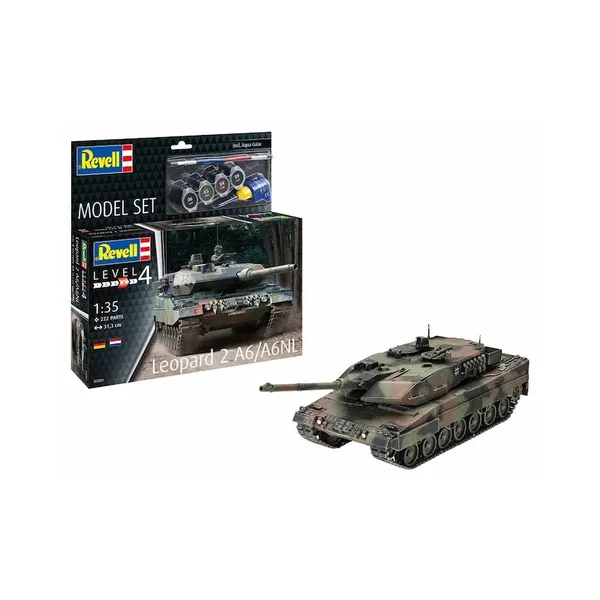 Maquette du Leopard 2 A6 moderne, qui est toujours considéré comme l’un des meilleurs chars de combat principaux au monde. La version A6 avec le canon embarqué plus long de 1,3 m est utilisée par l’armée néerlandaise en plus de la Bundeswehr.