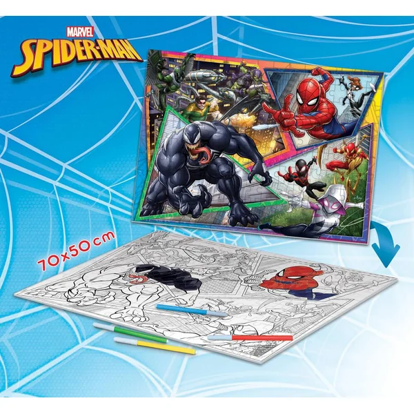 Amusez-vous à reconstituer les plus belles scènes de votre super-héros préféré. Après avoir terminé le puzzle, le plaisir continue ! Au dos de la planche, vous trouverez une scène en noir et blanc à colorier !