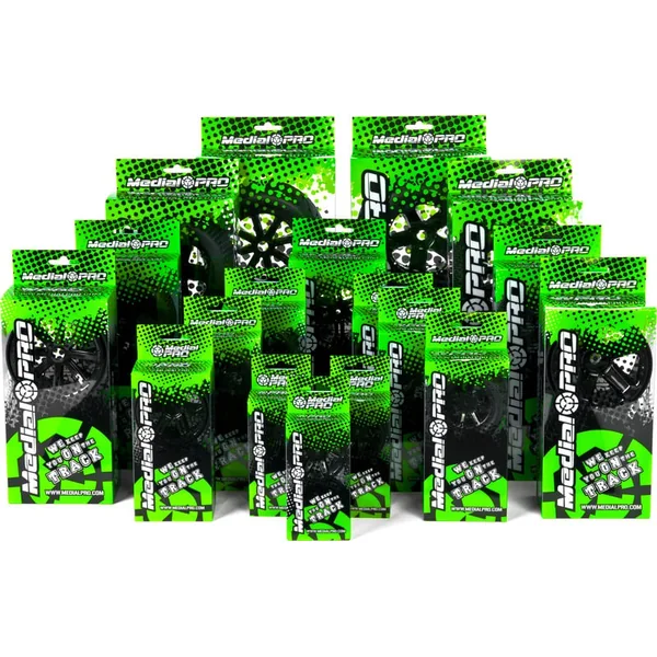 Roues complètes Medial Pro 2.2″ Viper avec jante Titan pour modèles réduits de voitures RC. La jante est de couleur noire, la dureté du mélange de pneus est douce.