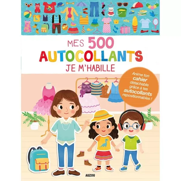 Il propose plus de 500 autocollants repositionnables et un cahier de décors détachable à animer.