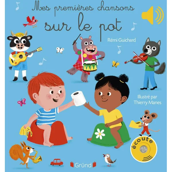 Avec ses puces sonores musicales, ce recueil est unique. Sur chaque page, l’enfant recherche dans l’illustration le petit bouton qui déclenchera la musique. C’est un livre joyeux qui accompagne le tout-petit dans son apprentissage de la propreté. Au son des chansons de Rémi Guichard, « C’est naturel » ; « Le chant du pot » ; « Hippopo » ; « Pipi pressant » ; « Piccoli » et « Faire pipi sur le gazon », il s’appropriera le pot en douceur. Les illustrations tendres et drôles de Thierry Manès accompagnent ce moment clé du développement des petits.