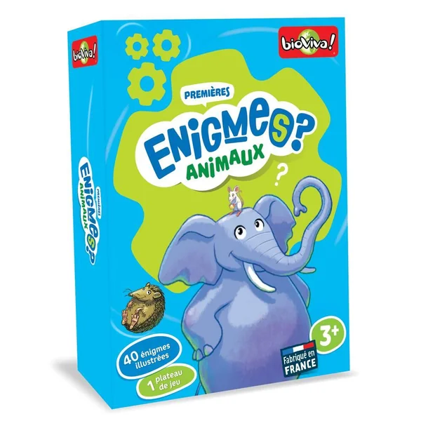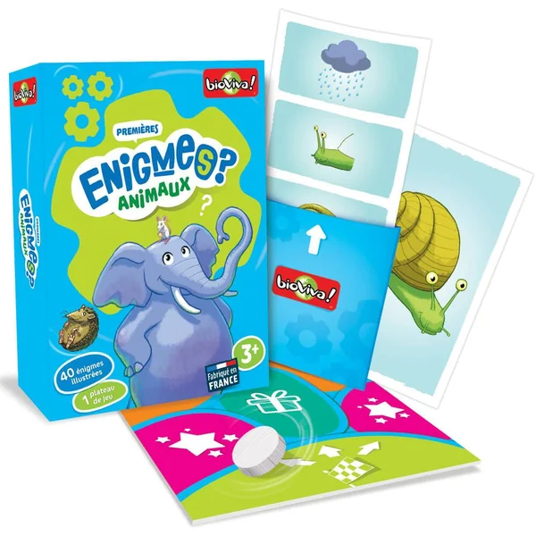 Devine ce qui se cache derrière les indices ! Dans le jeu Mes Premières Énigmes Animaux, trois illustrations amusantes et colorées sont dévoilées à tous les enfants. Chaque dessin est un indice qui permet de deviner le mot recherché. Un bocal, une rivière, des arêtes… c’est un poisson ! Une fleur, quelques gouttes d’eau, un jardin…. Quel enfant sera le plus rapide à deviner l’arrosoir ? Une gamme d’e´nigmes tout en images qui permet aux enfants de développer leurs capacités d’observation et de déduction. Durée d’une partie : 15 mn. De 1 à 6 joueurs.