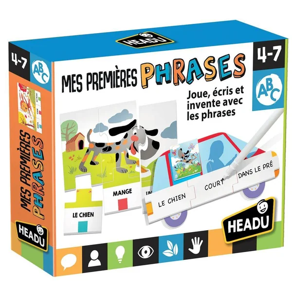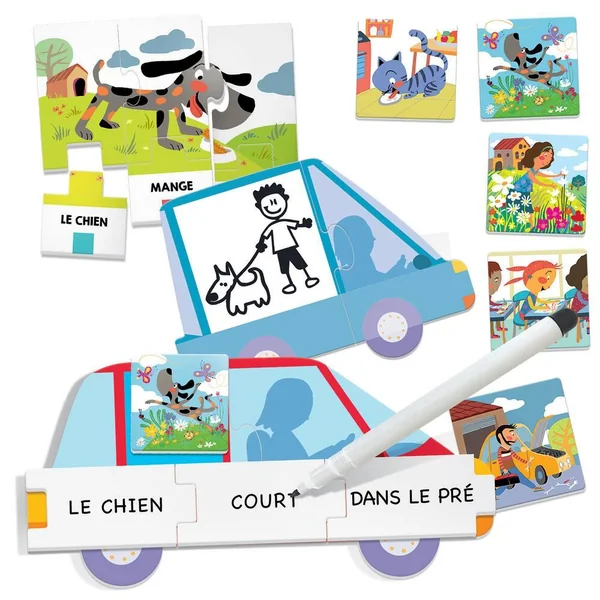 Un jeu pour s’exercer à la lecture et à l’écriture en construisant de premières phrases simples. Un kit riche et plusieurs modes de jeu. Première lecture et écriture ; Ecrire ses premières phrases ; Prononcer les mots ; Motricité fine.