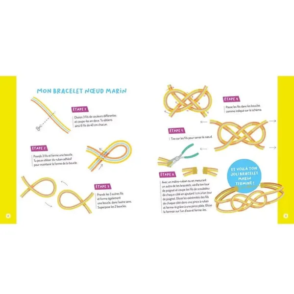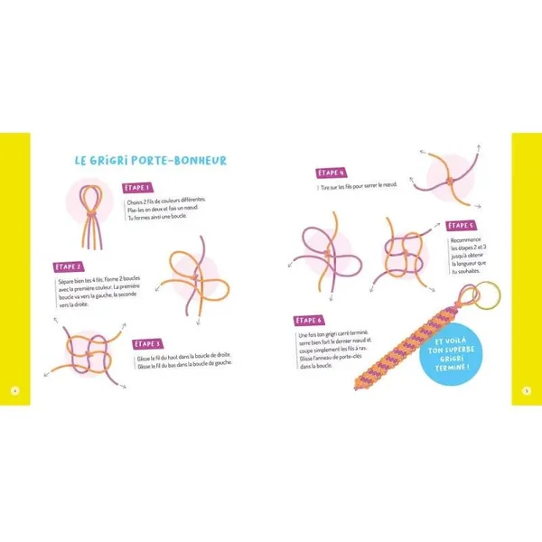 50 scoubidous aux couleurs néon sont fournis dans le coffret, ainsi qu’un livret pas à pas pour accompagner l’enfant dans ses créations. Le livret pas à pas propose 5 modèles à décliner sur pleins de variation de couleurs !