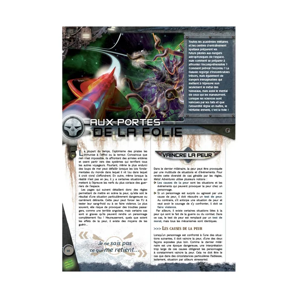 D’innombrables légendes circulent sur de terribles monstres rôdant au sein de nébuleuses oubliées ; sur d’horribles démons attendant patiemment dans les ténèbres de l’espace ; sur d’incroyables créatures originaires de l’hyperespace. Certaines sont fausses… d’autres sont vraies ! Découvrez la vérité sur les vaisseaux fantômes, les monstres surnaturels et la folie qui guette les pirates qui s’y intéressent de trop près…