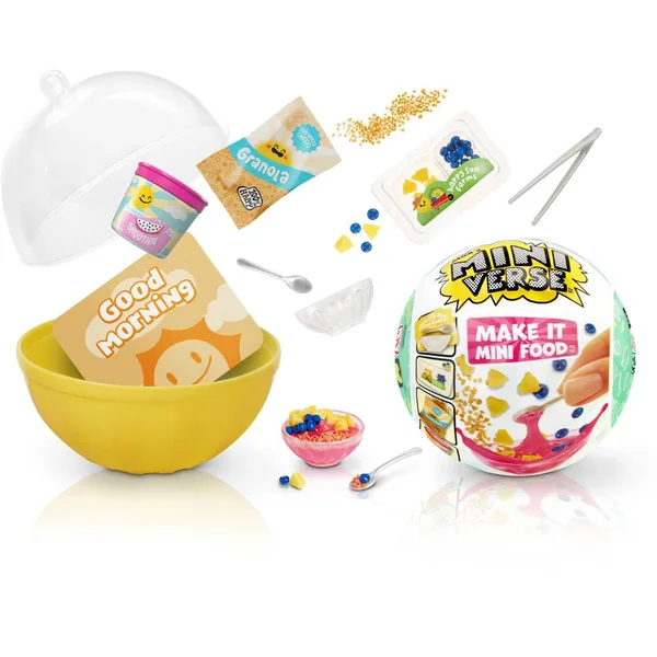 Que fait-on lorsque l’on associe le fait-main à la collection ?Voici le Miniverse de MGA, Make It Mini Food, le mini objet de collection ORIGINAL que vous pouvez PRÉPARER, FAIRE DURCIR et EXPOSER. Chaque boule est livrée avec des mini-ingrédients réalistes et des accessoires pour créer vos propres mini-répliques de vos snacks et desserts préférés ! Chaque paquet est une SURPRISE, vous ne saurez donc pas quel mini vous avez avant de le déballer ! Comparez le contenu de votre paquet avec le guide du collectionneur inclus, pour savoir quelle figurine vous avez. Suivez la carte de recettes au verso pour préparer votre figurine. Une fois que vous avez fini de créer votre figurine, placez votre réplique sous une lumière UV jusqu’à ce que la résine ait durci. Une fois la résine durcie, vous avez une pièce de collection prête à être exposée !Le plaisir ne s’arrête pas là ! Votre réplique finie n’est pas le seul objet digne d’être collectionné. Des mini répliques de granola aux moules à esquimau en passant par les paquets de fraises, il y a plus de 100 répliques uniques d’ingrédients, d’emballages et d’accessoires de cuisine de la série 3 de Make It Mini Food Cafe à collectionner pour créer vos propres mini objets de collection.Collectionnez tous les objets de collection de la série 3 de Make It Mini Food Cafe ! Visitez la boutique Miniverse de MGA pour faire des achats et en savoir plus sur toutes les créations MAKE IT que vous pouvez collectionner ! Si ce n’est pas Miniverse, ce n’est pas Miniverse !