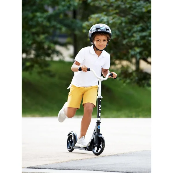 La trottinette grandes roues Micro Cruiser Noir !Avec son charme rétro et ses grandes roues de 200 mm, la Micro Cruiser est la première trottinette grandes roues conçue spécialement pour les enfants et adolescent.