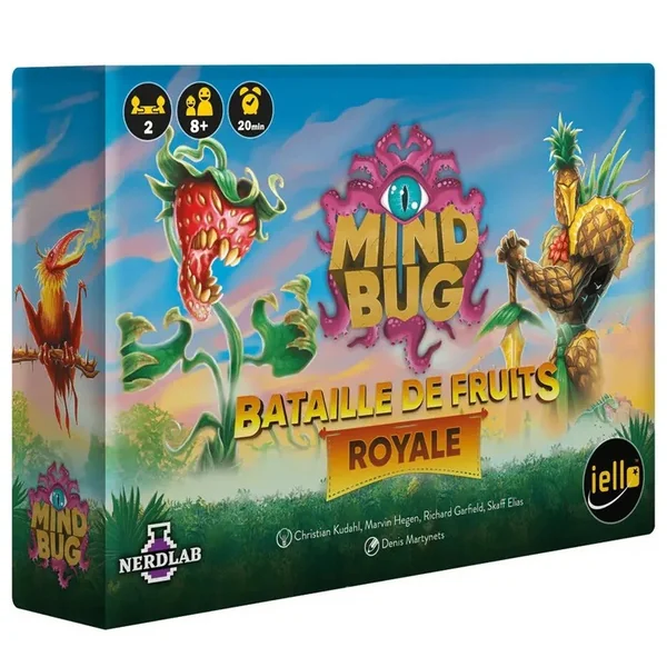 Mindbug : Bataille de Fruits Royale est un jeu standalone dans l’univers Mindbug qui s’inscrit dans la tumultueuse histoire d’un royaume d’ananas paladins luttant contre le puissant roi litchi. Plantez vos créatures fruits et légumes, protégez-les de vos adversaires et récoltez leurs folles capacités. Et comme toujours, même s’il est un standalone, Mindbug : Bataille de Fruits Royale peut être joué de manière indépendante ou associé avec d’autres jeux Mindbug.