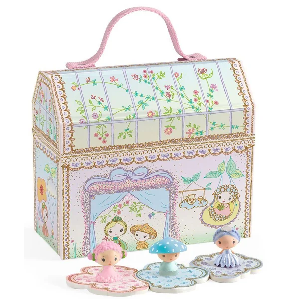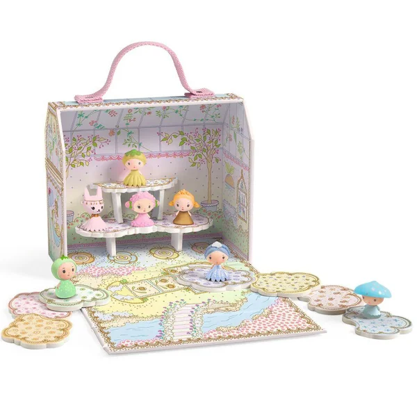 Cette petite serre où habitent 7 adorables compagnons est un havre de paix immergé dans la nature ! À l’ouverture, on découvre une rivière ehantée qui coule au fond du jardin. Les Tiny jouent à la marelle, puis se reposent sur leur couffin, au milieu des fleurs. Pour la nuit, se trouve un espace confortable au fond de la serre où l’on dispose 2 petites étagères, en guise de lits superposés. Des heures de jeu en perspective ! Tinyly, un univers poétique, de jolies figurines aux traits délicats et aux couleurs douces qu’on expose, qu’on collectionne ou qu’on place au cœur d’histoires et de fabuleuses aventures !