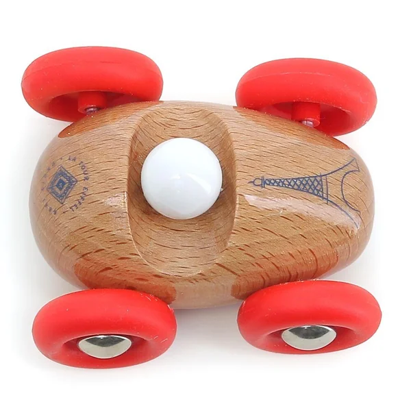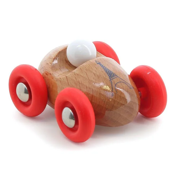 Cette petite voiture en hêtre naturel verni, conçue dans le cadre du partenariat exclusif Vilac x Tour Eiffel, célèbre la beauté du bois et l’excellence du design français.