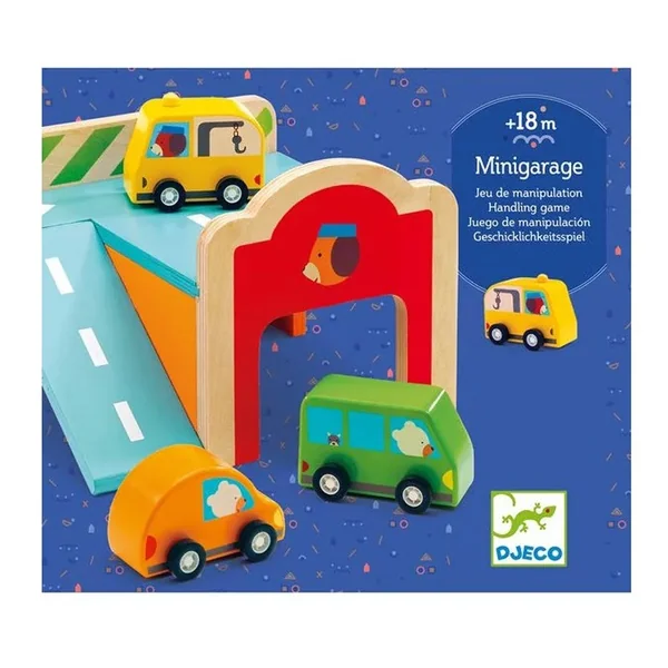 Un premier petit garage en bois pour jouer dès 18 mois. L’enfant joue avec les trois voitures en les faisant descendre sur la rampe, en les cachant sous le garage ou en les garant. Il s’amuse à les faire rouler et à imiter le bruit du moteur.